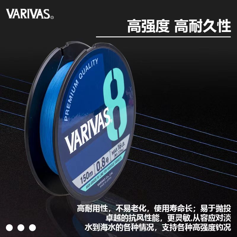 2022年2月末発売予定8ブレイドPE 高密度的编织工艺、安定的直线强度实现8股捻线标准PE线。 独特的VARIVAS非氟涂层固定(sp-v)颠覆PE常识的平滑性和惊人的耐久性。 从海钓到淡水可以对应各种各样的钓鱼。 3点高性能: ★高強度→同大物搏斗时安心! ★高耐久性→初期性能持久! ★高感度→中鱼时瞬间感知!