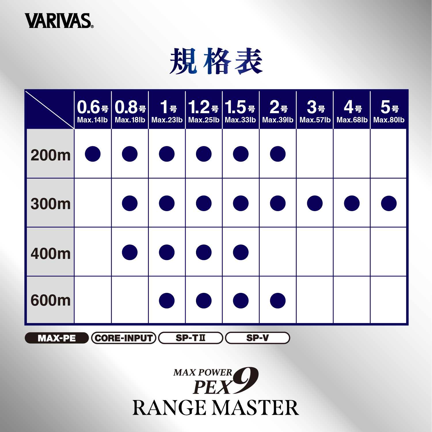 | 号 | MAX LB. | 200m | 300m | 400m | 600m |