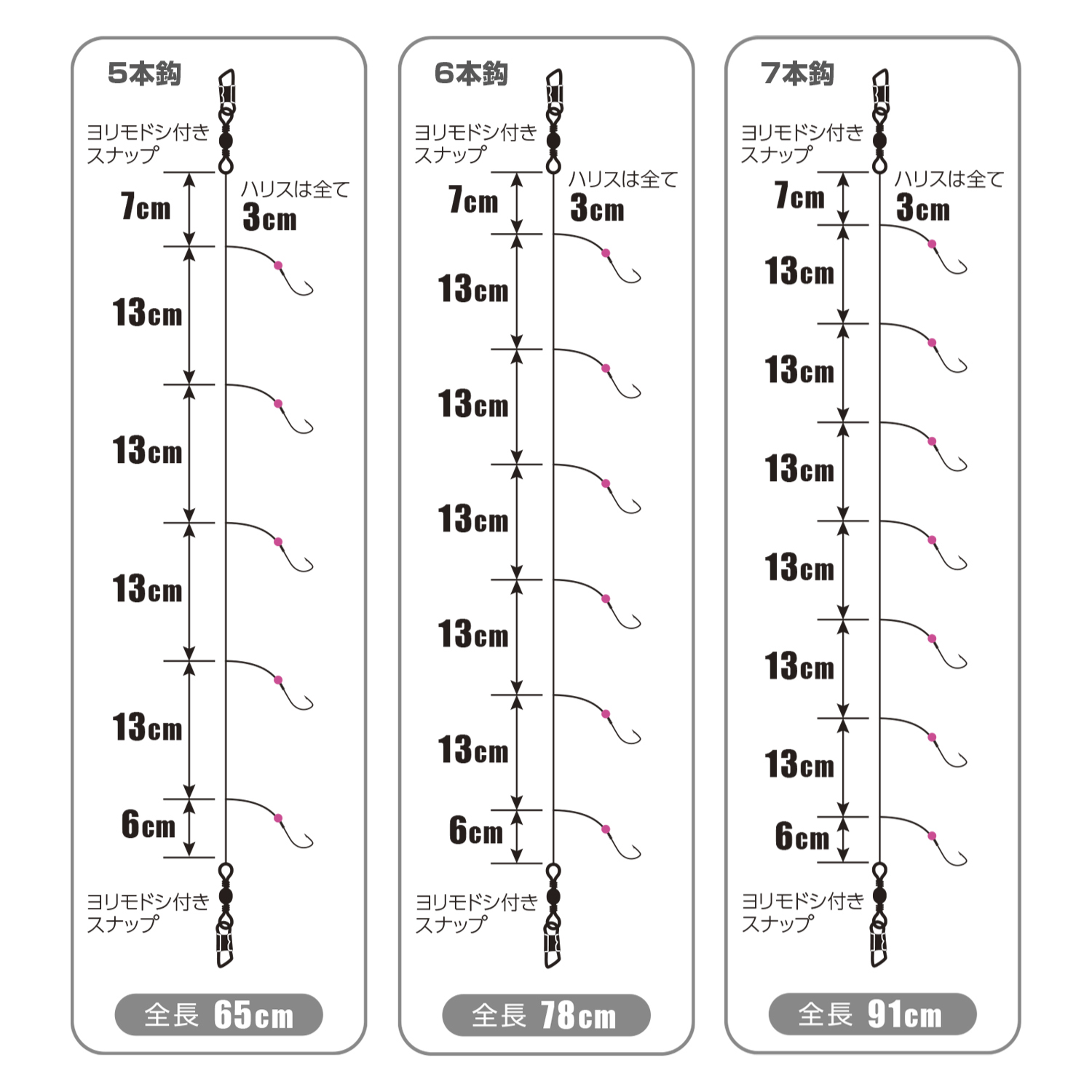 仕掛け全長 | 製品No. | 入り数 |